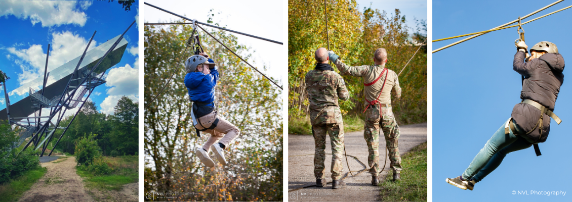 Stel je even voor: je staat op de bliksemtrap in Kattevennen. Je hebt een veiligheidsharnas aan en kijkt - al dan niet met wat angstzweet - uit over het magnifieke Nationaal Park Hoge Kempen. Je neemt nog snel een selfie in de weerspiegeling van de bliksemtrap. Na enkele tellen zet je de stap en duik je via een spannende deathride bliksemsnel naar beneden het herfstbos in. Daar remmen de militairen je af en kan je even bekomen van deze bijzondere sprong in de natuur.